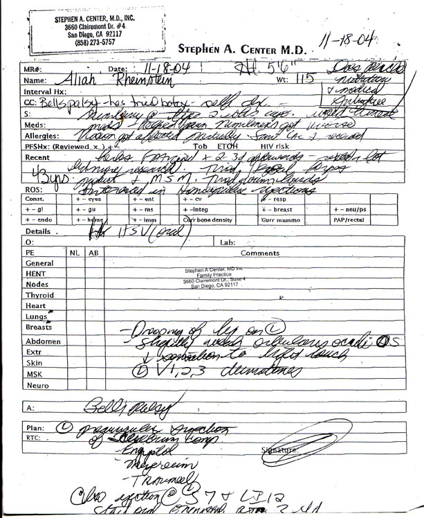 I knew that I could do all my energetic work… the muscle was back and I was working it out… building up the strength with face massage. I found someone to sub for me on 11/18/04 yoga class and my boss Diane taught Comedy Traffic School Class for me on Saturday 11/20/04 Then, I had Thanksgiving day off from my weekly Thursday yoga class (11/25/04) and Thanksgiving weekend off from teaching Comedy Traffic School - and that gave me some time off of work to get some good rest that I needed after the move. I was back to teaching my yoga class Dec 2nd and I taught Comedy Traffic School Dec 3rd at The Comedy Store and another that weekend and I was back to my busy life with my 4 part-time jobs that I loved. Dr. Center and I saw it as a stress reaction and that was why he did not have me go